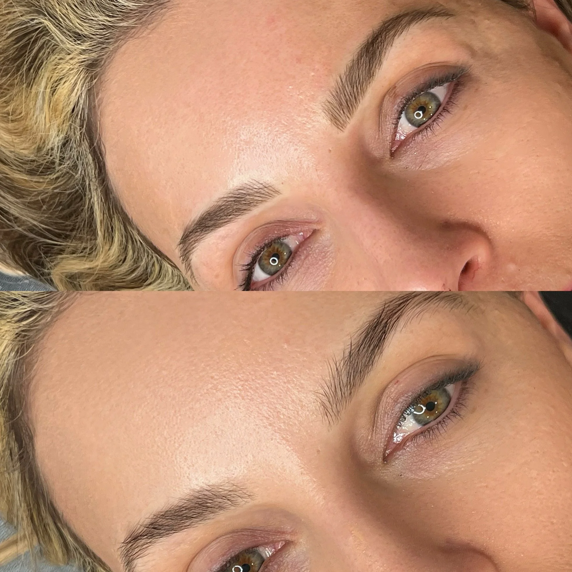 Microblading is a semi-permanent eyebrow enhancement that uses a fine, hand-held tool to create natural-looking hair strokes. Ideal for those looking to fill in sparse brows, define shape, or achieve a fuller, more symmetrical look. The pigment is deposited just beneath the skin’s surface, blending seamlessly with your natural hair.